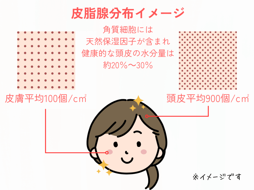 まず大前提として、頭皮は皮脂分泌が活発で、顔のTゾーンの2倍以上の皮脂が生産されます。
